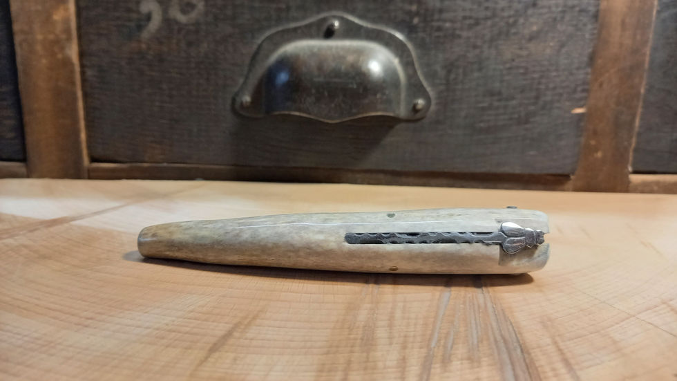 Couteau Robin d'Aubrac fermant équipé d’une lame 12C27 MOD de 12 cm, avec un manche en bois de cerf façonné à la main. Ce couteau est équipé d’un demi-ressort avec l'abeille forgée et sculptée à la main , i ne possède pas de platines, ce qui lui permet d’être plus léger mais aussi plus solide de par l’arrière du manche qui est massif.Très bien en main , vous ne le sentirez pas dans votre poche, il pèse moins de 100 grammes.